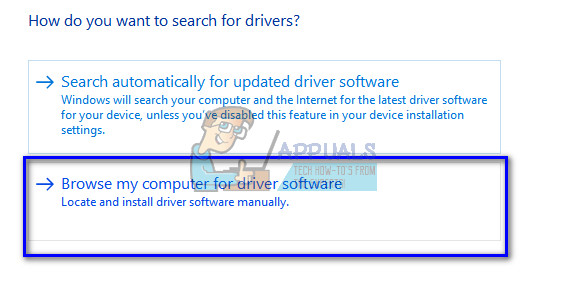 A new window will pop up asking whether you want to update the drivers automatically or manually. Select the second option (manually). Browse to the location where you downloaded the drivers and install them.