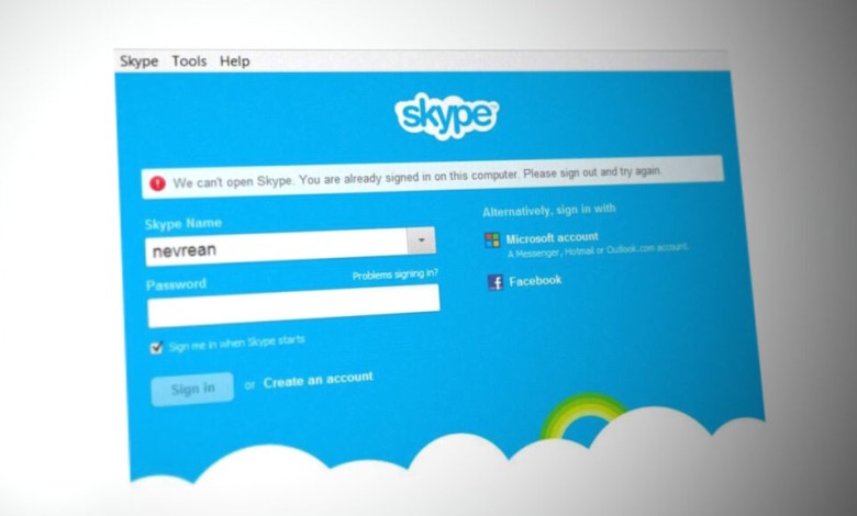 What is causing the We can’t open Skype. You are already signed in on this computer” error?