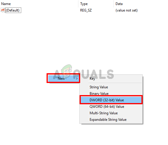 5. Right click on an empty space from the right pane, select New then select DWORD (32-bit) Value