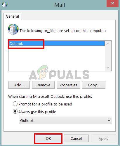 - Select your Outlook profile and click Ok