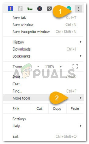 - Move your cursor to ‘More tools’ and then select ‘Extensions’.