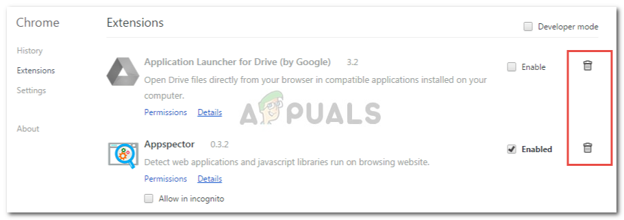 Google Chrome Menu - A new tab will be opened, hit the trash bin icon in front of each addon to remove them.