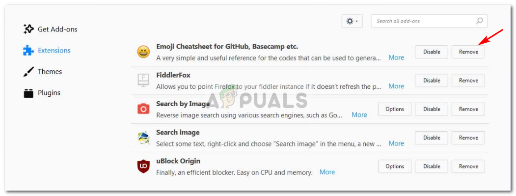 To start off with one of the obvious reasons for the error, you have to disable the add-ons that you’ve installed on your browser which could be intervening with your network connections. Just to be safe, we’d recommend to remove all the add-ons and then add them later on if they aren’t causing the problem. Here’s how to remove the addons: