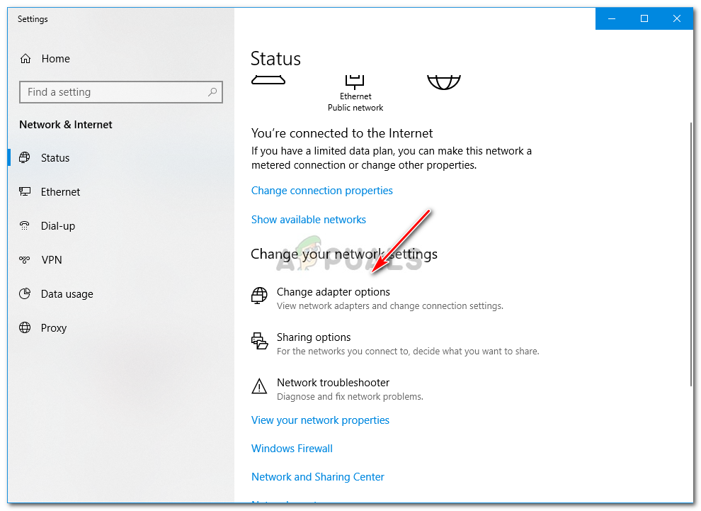 - Under ‘Change your Network settings‘, double-click ‘Change adapter options‘.