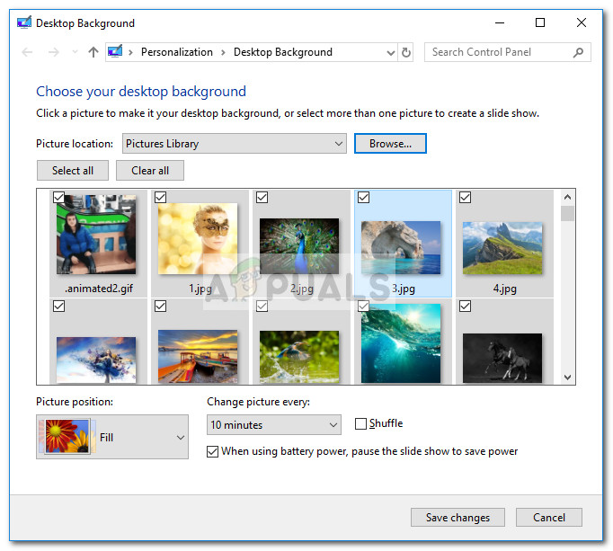 - Proceed to make the background slideshow selection as you see fit, then hit the Save changes button.