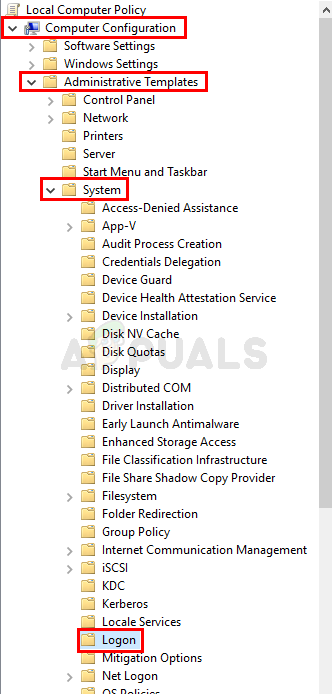 - Navigate to this location in the group policy editor Computer Configuration -> Administrative Templates -> System -> Logon. If you don’t know how to navigate to this location then follow the steps given below