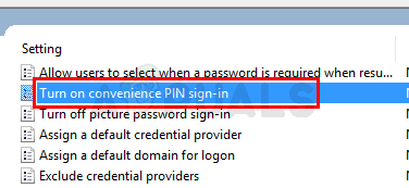 - Look for an entry named Turn on convenience PIN sign-in in the right pane. Double click it