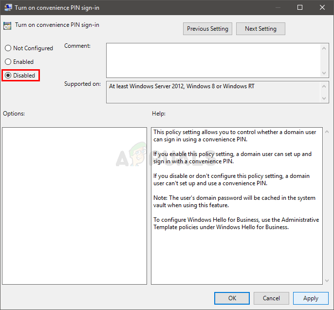 Making some changes in the group policy editor has also resolved the issue for plenty of users. There is a setting named Turn on convenience PIN sign-in in the group policy editor. Disabling this option will stop this prompt.