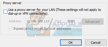 - Uncheck the box which says “Use a proxy server for your LAN”. Press Ok to save changes and exit.