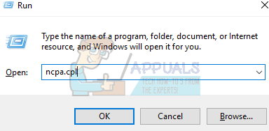 - Press Windows + R to launch the Run application. Type “ncpa.cpl” in the dialogue box and press Enter. This will launch a window consisting of all the adapters present on your computer.