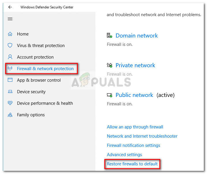 Method 3: Resetting the Firewall & Network protection settings