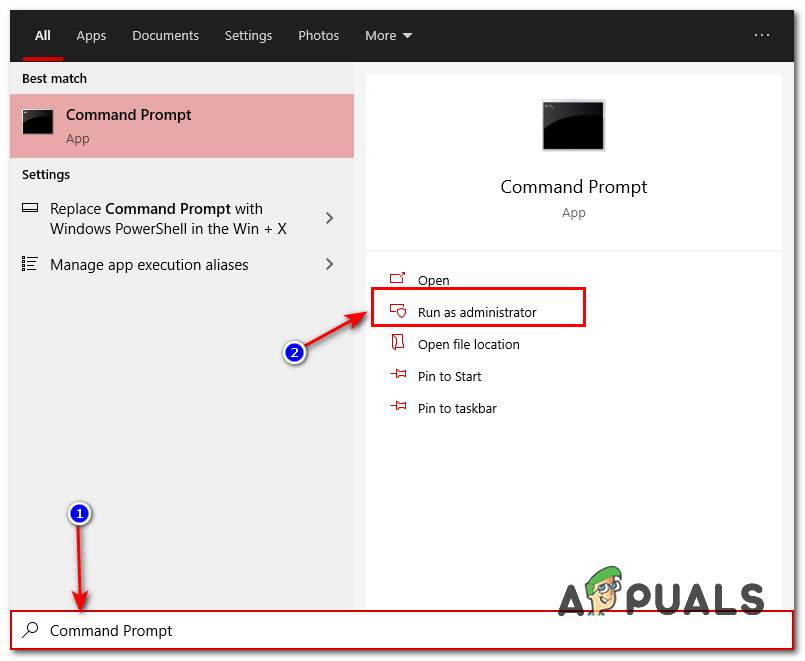 - Press the start menu button, now search for Command Prompt then click “Run as administrator”.