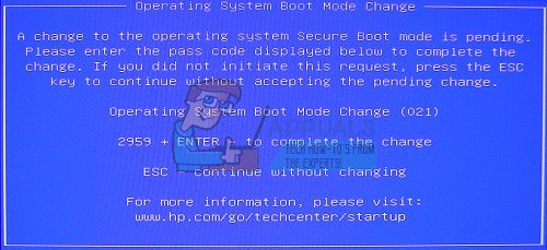 - Press the power button to turn the computer on. As soon as the computer starts, a message appears indicating that the boot mode has changed.