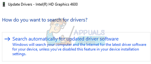 - Now Windows will pop a dialogue box asking you which way do you want to update your driver. Select the first option (Search automatically for updated driver software) and proceed. If you are unable to update the drivers, you can head over to your manufacturer’s site and install them manually.