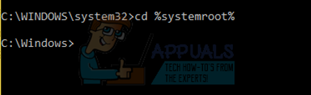 - Now type “cd %systemroot%”. This command will navigate your command prompt to the installation directory of your Windows operating system.