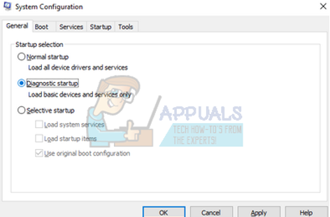 - Now navigate to the General tab and select the option of Diagnostic startup.