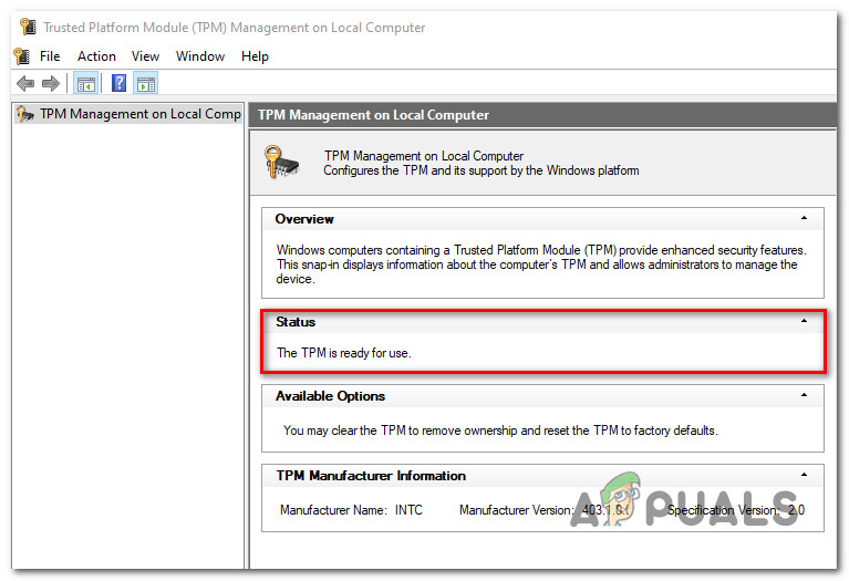 Accessing the TPM module screen on Windows 10 - Once you’re inside the TPM module, check the Status from the right-hand section of the TPM menu.