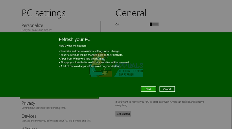 - Press ‘Next’ and then follow the instructions that will be provided on the screen to refresh your PC.