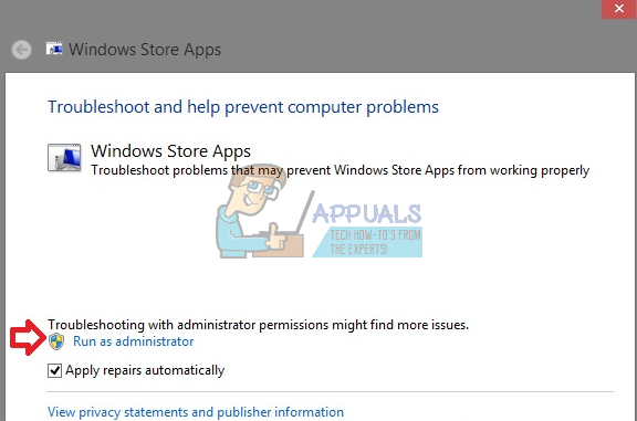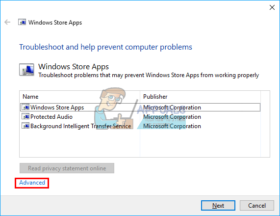 - In the Windows Store Apps troubleshooter, click/tap on the Advanced link.