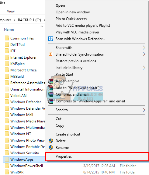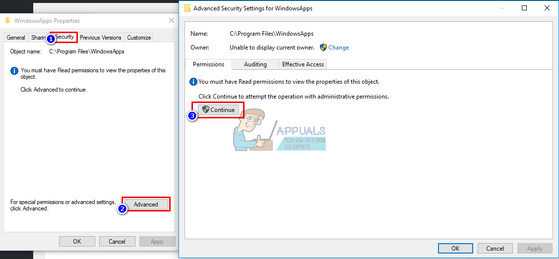 - Right click on ‘windowsapps’ and go to properties-> security tab->advanced