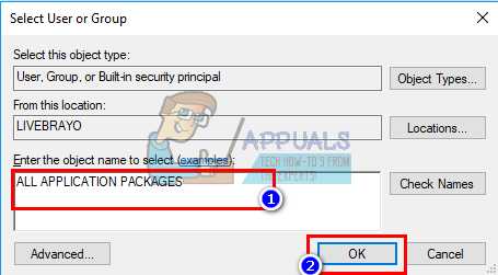 - In the space below “Enter the object Name”, type ALL APPLICATION PACKAGES