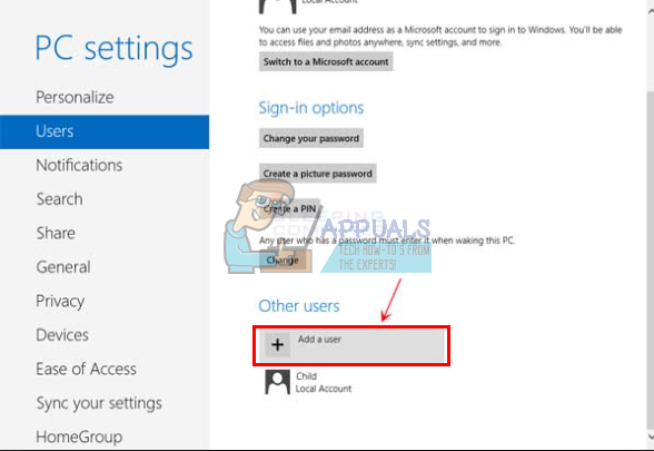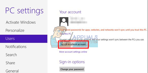 - Click on ‘users’ and then go to your username. If available, click on “switch to a local account”