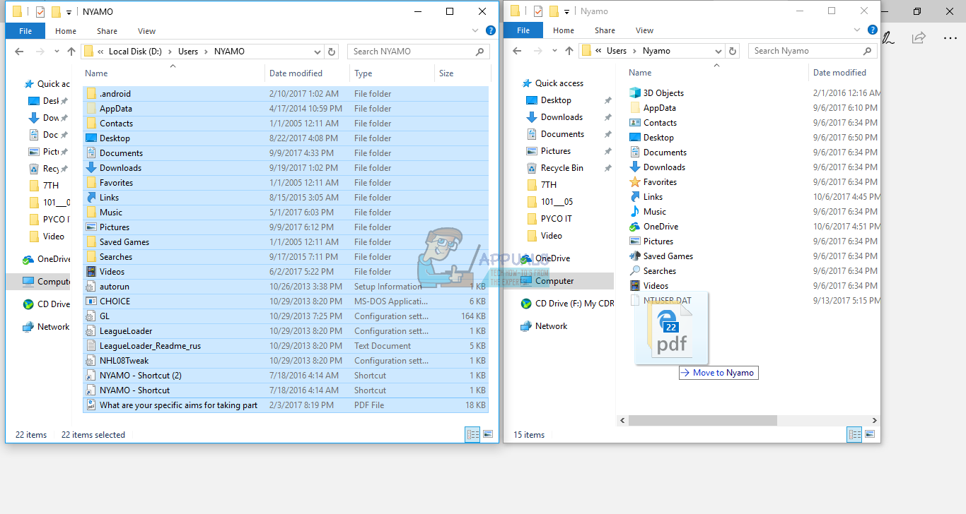 - Take note of the user’s libraries path under folder “Users” (usually similar to the user’s name, e.g. C:\Users\USERNAME1\);