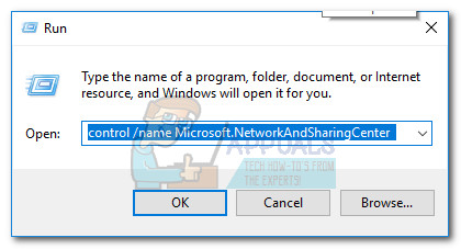 - Press Windows key + R again to open another Run window. Type or paste “control /name Microsoft.NetworkAndSharingCenter” in the Run box and hit Enter to open Network and Sharing Center.