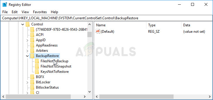 HKEY_LOCAL_MACHINE\SYSTEM\CurrentControlSet\Control\BackupRestore\FilesNotToBackup