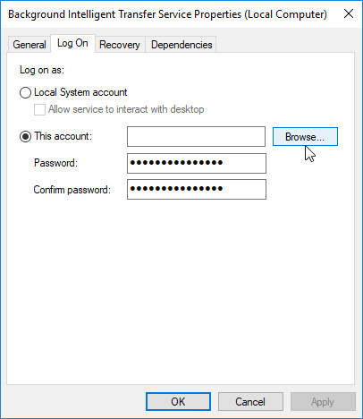“Windows could not start the Background Intelligence Transfer Service on Local Computer. Error 1079: The account specified for this service differs from the account specified for other services running in the same process.”