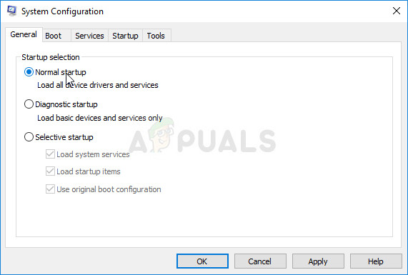 - Stay in the General tab and change the radio button under Startup selection from the previous setting to Normal startup and Apply the changes before exiting. Restart your computer and check to see if the problem is gone.