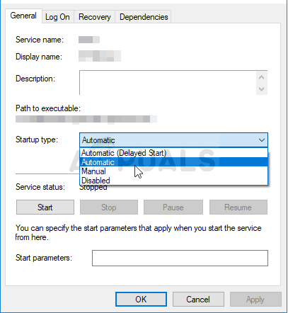 - Make sure that the option under the Startup type menu in the service’s properties window is set to Automatic before you proceed with other steps. Confirm any dialogue boxes which may appear when changing the startup type. Click on the Start button at the middle of the window before exiting. Make sure you repeat the same process for both of the services we mentioned.