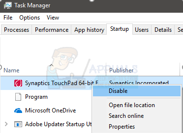 - Right click on one of those items that appeared in the Task Manager and select Disable