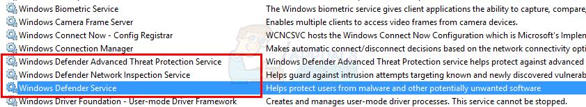 - Check Windows Defender Advanced Threat Protection Service and Windows Defender Network Inspection Service. Make sure these are enabled and running by repeating the Step 5. Depending on your configurations these settings might be greyed out so don’t worry. Just change if the options aren’t greyed out and aren’t set to automatic.