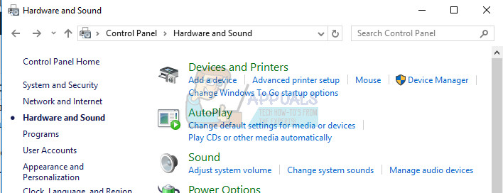 - Start Control Panel by searching for it in the Search bar located at the left part of your taskbar, click Hardware and Sound, and then click Device Manager.