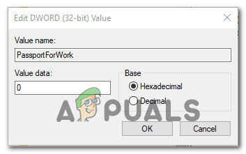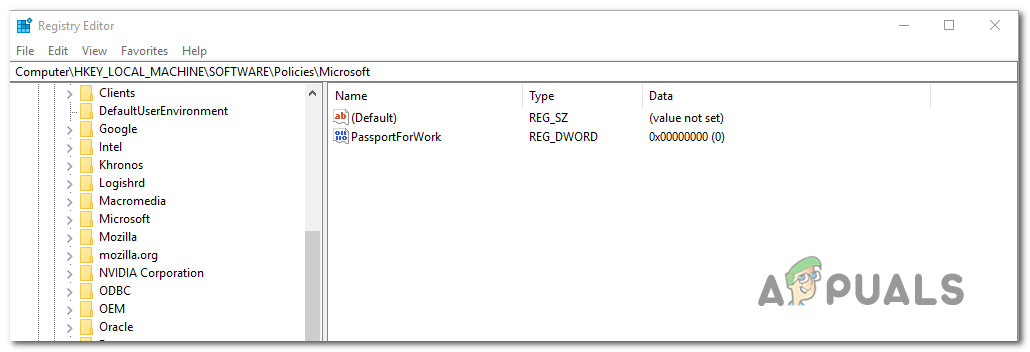 Setting the value data of PassportForWork to 0 - Close Registry Editor and restart your computer to see if this procedure has been successful.