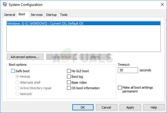 - Click on the ‘Boot’ tab and uncheck the ‘Safe Boot’ option (if checked).