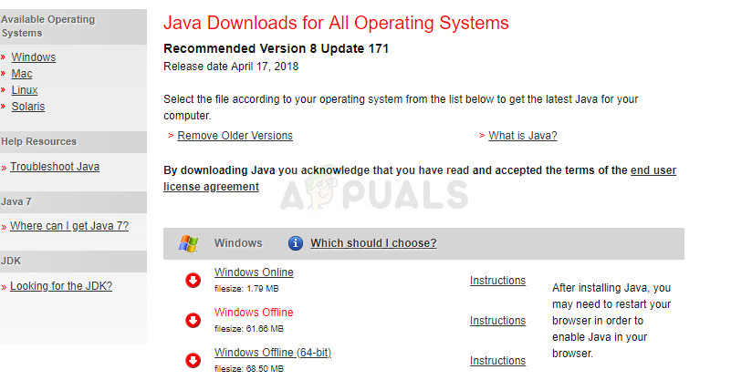 There are two ways of installing Java. You can either use the online installer which only downloads a small file which is used to download the entire program or you can download the entire package and install it without an active Internet connection. Here is how to install it offline: