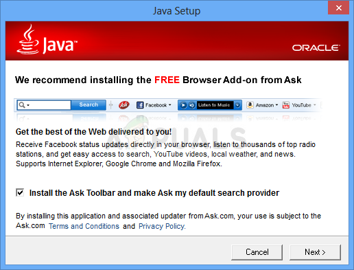 - Oracle has partnered with companies that offer various products. The installer may present you with option to install these programs when you install Java. After ensuring that the desired programs are selected, click the Next button to continue the installation.