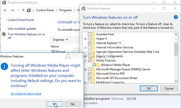 - Now you can navigate back to the Windows Media Player entry in the Turn Windows Features on or off window and check the box next to it again which will start the reinstalling process. Restart your computer again after it has finished installing and check to see if the problem is solved!