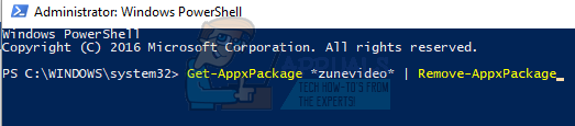 - Type the following command and press Enter. This will uninstall “Movies & TV” from your computer.