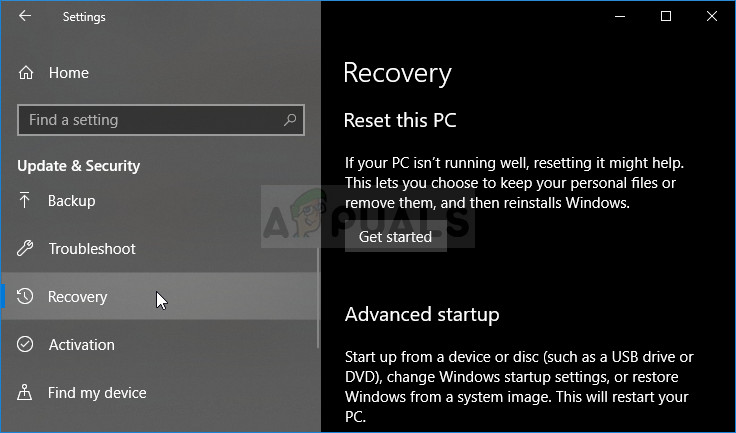 - Navigate to the Settings app on Windows 10. You can get there by clicking the gear icon in the lower left part of the Start menu. Select the “Update & security” option and click on Recovery tab in the left pane.