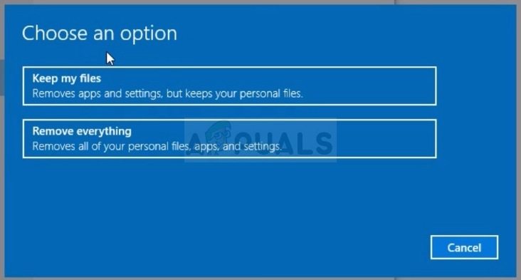 - Click either “Keep my files” or “Remove everything,” depending on what you want to do with your files. Either way, all of your settings will return to their defaults and apps will be uninstalled. We recommend you choose the Keep my files option as the problem probably doesn’t lie with your documents or similar.