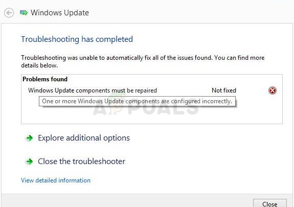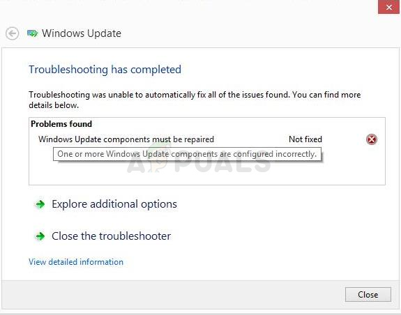 This error appears when users are struggling with the Windows Update service and it’s a message which appears after running the Windows Update troubleshooter. The error itself is not quite self-explanatory and this message is pretty much the only clue you have available in order to troubleshoot the problem.