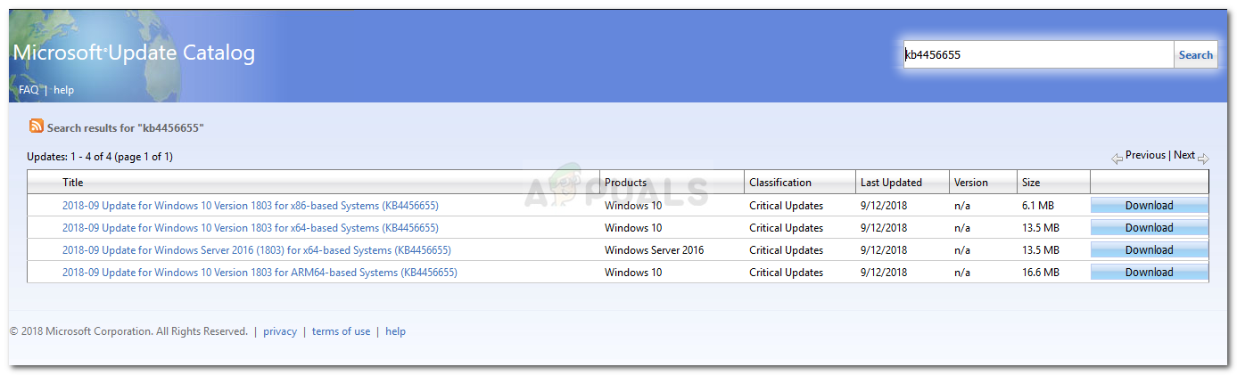 You can also try to download the most recent KB that you’ve been trying to install on your system from Microsoft Update Catalog. Here’s how to do it: