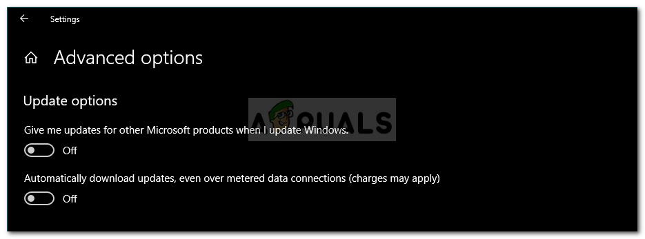 - Toggle off the Get updates for other Microsoft products when I update Windows option.