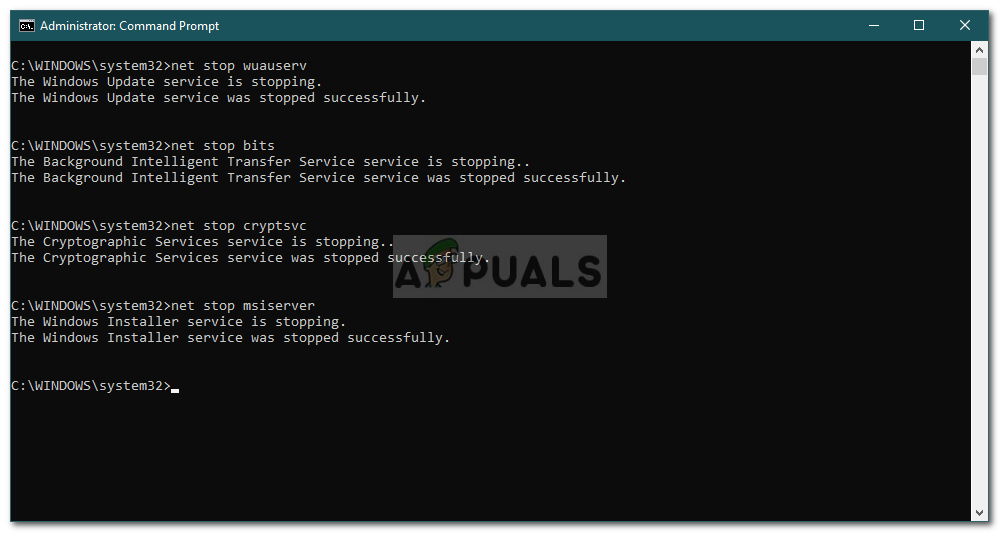 net stop wuauserv net stop cryptSvc net stop bits net stop msiserver