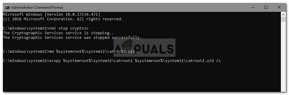 Deleting the Contents of Catroot2 Folder - Then, type in the following command in the command prompt: