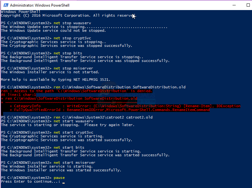 ren C:\Windows\SoftwareDistribution SoftwareDistribution.old