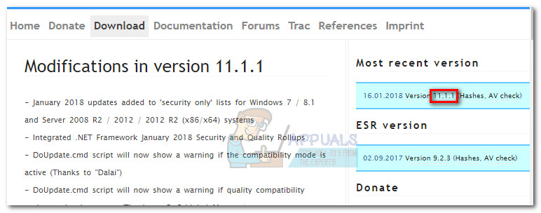 - Visit the official page of WSUS Offline Updater (here). Navigate to the Download page and download archive by clicking on the version number under Most recent version.